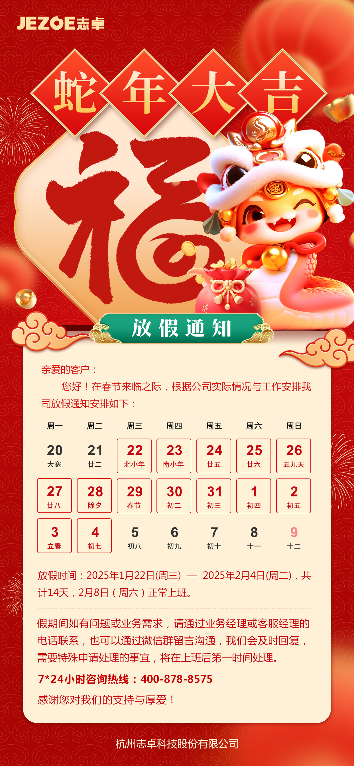 2025年春節放假通知